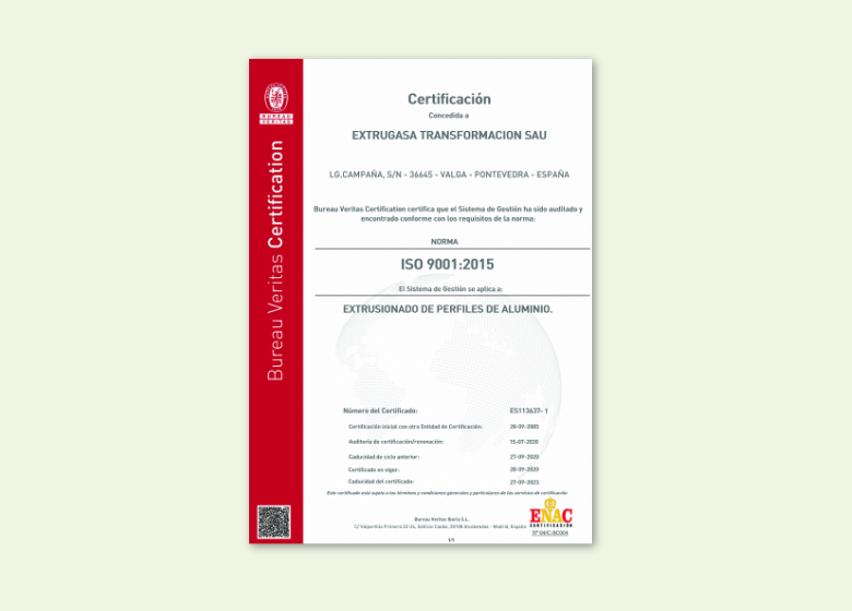 Standard zur Zertifizierung des Managementsystems für die Extrusion von Aluminiumprofilen.
